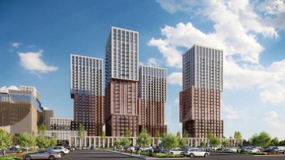 Четыре 32-этажные башни со смещенными осями, объединенные общим стилобатом. На крыше дома появятся детские и спортивные площадки, зоны для релакса и отдыха. А в самом стилобате — торговая галерея и паркинг.