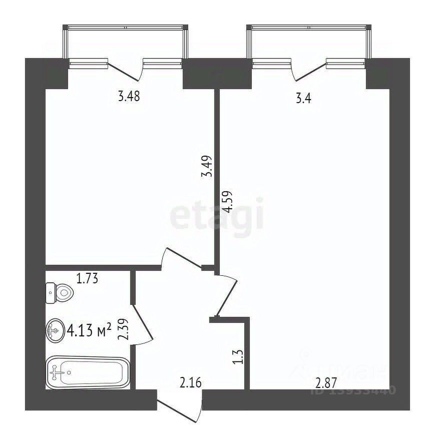 Квартира общей площадью 40.4 кв.м., с изолированной спальней 14 кв.м. и просторной кухней 12 кв.м., расположена на комфортном 3 этаже.