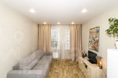 Вашему вниманию представлена красивая квартира - студия с шикарным видом и современным новым ремонтом. При продаже остается кухонный гарнитур с варочной поверхностью и вытяжкой , диван, холодильник, стиральная машина . Заезжай и живи! Высота потолков 3,05м. О КОМПЛЕКСЕ: Жилой комплекс "Скандия у реки". Это современный архитектурный проект в скандинавском стиле. Квартал находится в районе Док, от которого до Цветного бульвара 10 минут на машине и 15 минут на общественном транспорте. В 20 минутах ходьбы находится Мост влюбленных, Тюменский индустриальный университет, легкоатлетический манеж и спортивный комплекс "Зодчий". Два паркинга на 470 мест: подземный и многоуровневый надземный. На территории комплекса и внутри домов установлено видеонаблюдение, в квартирах — видеодомофон. Ночью двор хорошо освещен, нет темных закоулков.
