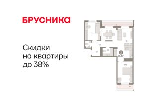 Квартира с кухней-гостиной и двумя спальнями в квартале "На Гастелло". Особенности планировки: балкон, вид во двор, второй санузел, окна в пол, окна на две стороны, предчистовая отделка, разнесённые спальни, терраса.