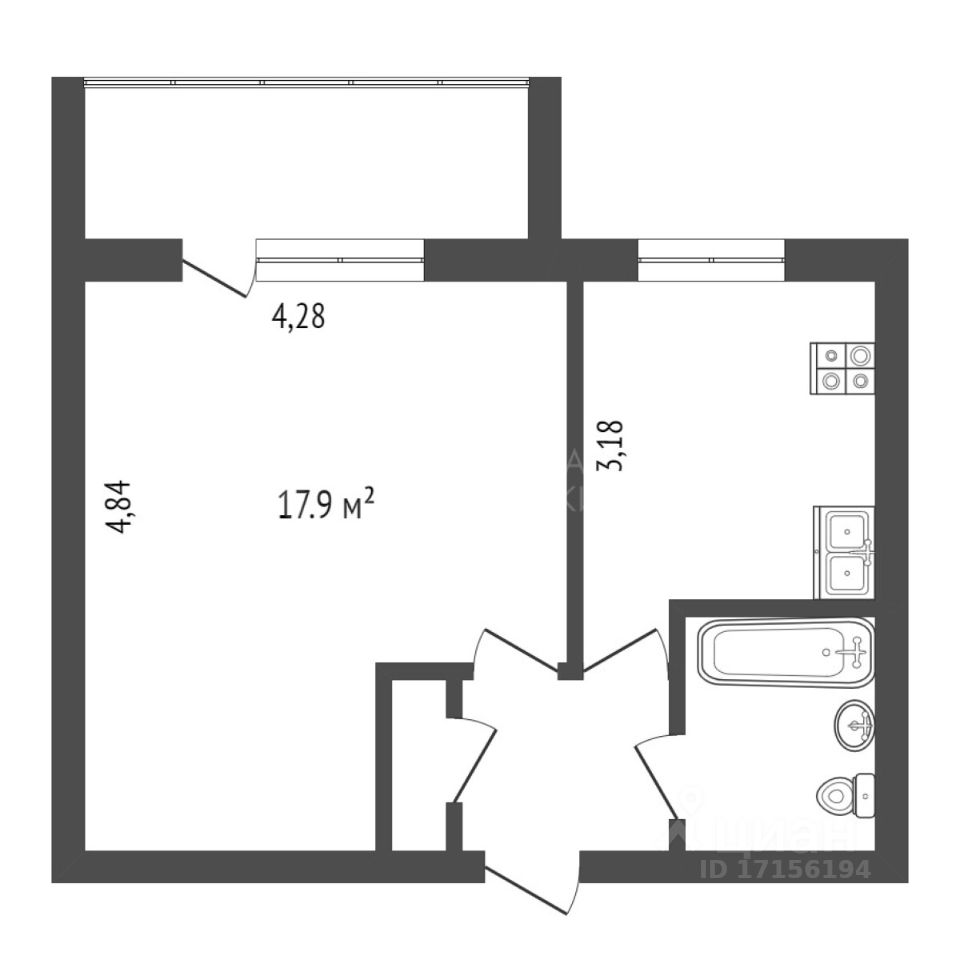 • Удобная планировка: Просторная комната с возможностью зонирования под ваши нужды. Здесь можно создать уютную спальню и стильную гостиную в одном пространстве.