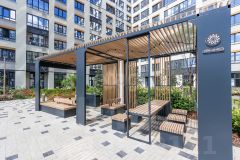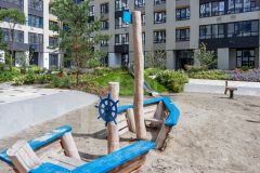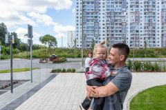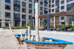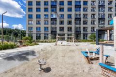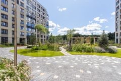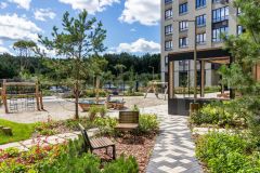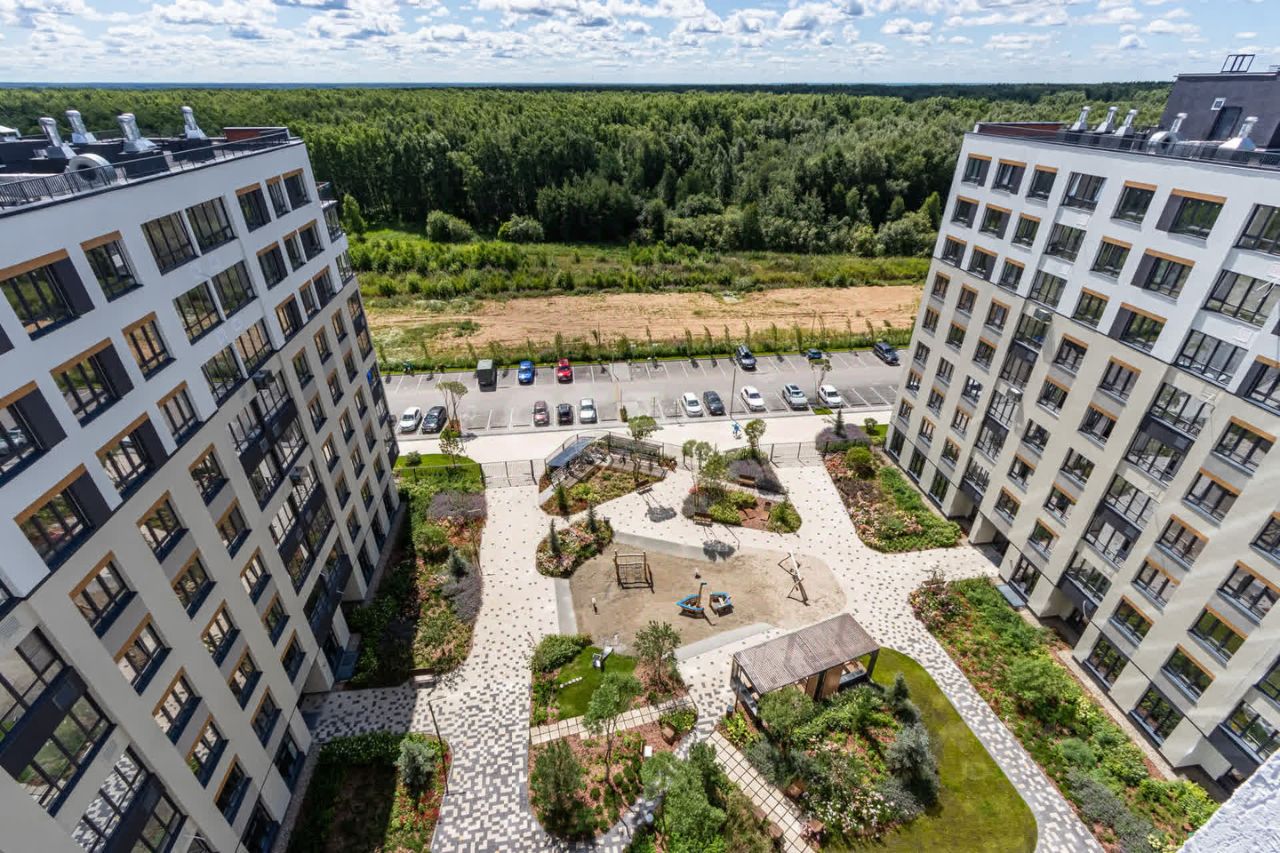 Сам комплекс — как отдельный мир. Закрытые дворы без машин, парк для прогулок, вечерняя подсветка, чистейший воздух благодаря бактерицидным лампам, фильтрованная питьевая вода из крана, телеметрия, розетки для электросамокатов — всё продумано, чтобы жить здесь было удобно и современно.