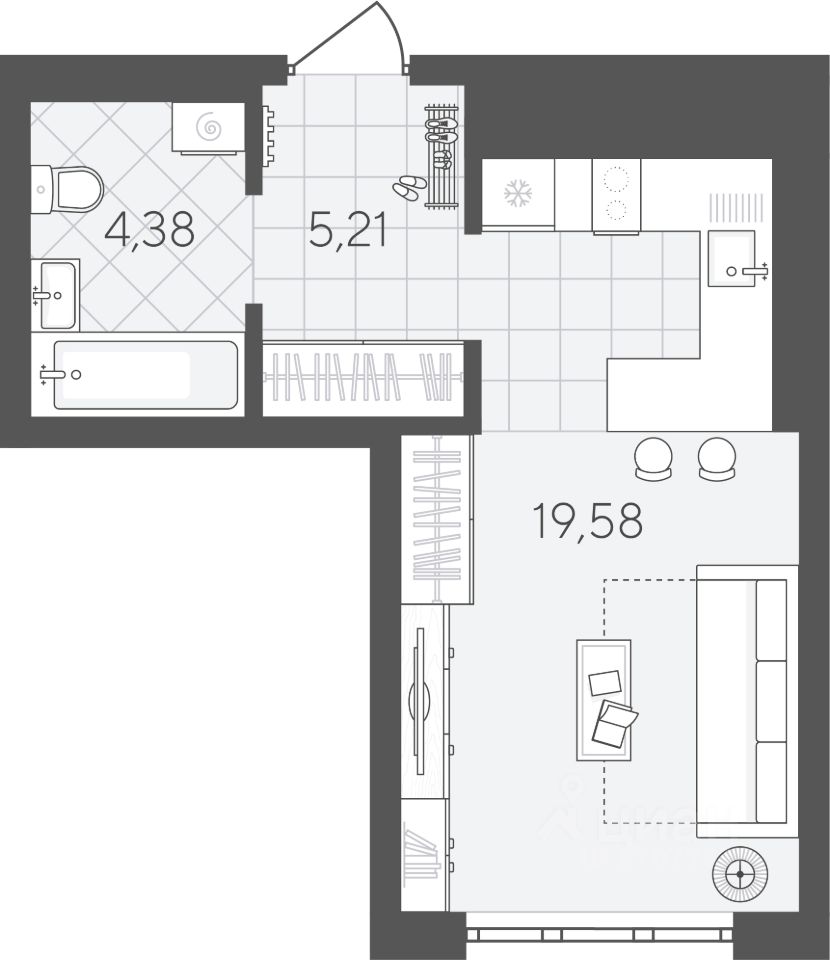 Основная комната в квартире многофункциональна и легко трансформируется в гостиную, спальню или столовую.