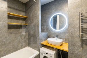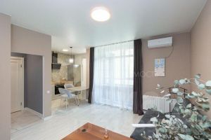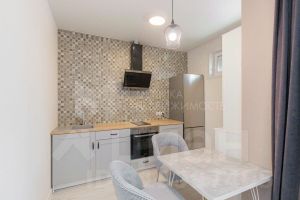 - В квартире выполнено зонирование пространства с разделением на кухню и комнату