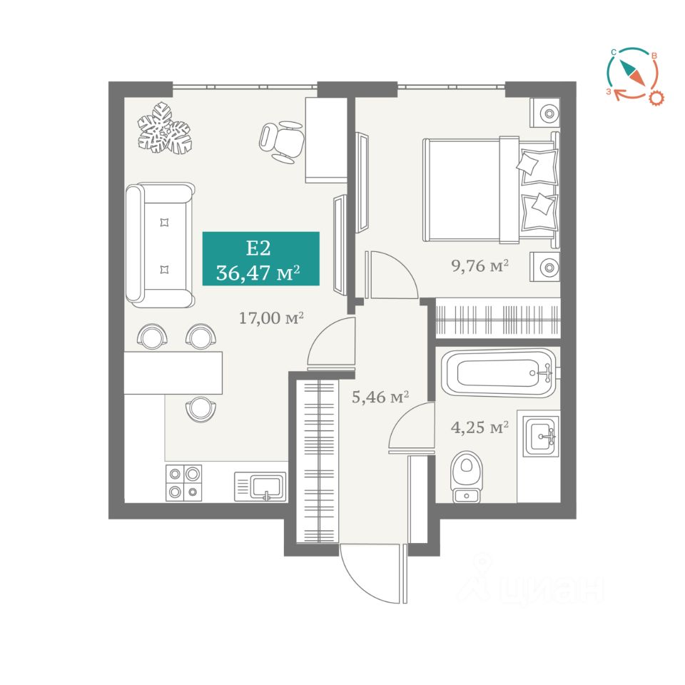 36,47 м²