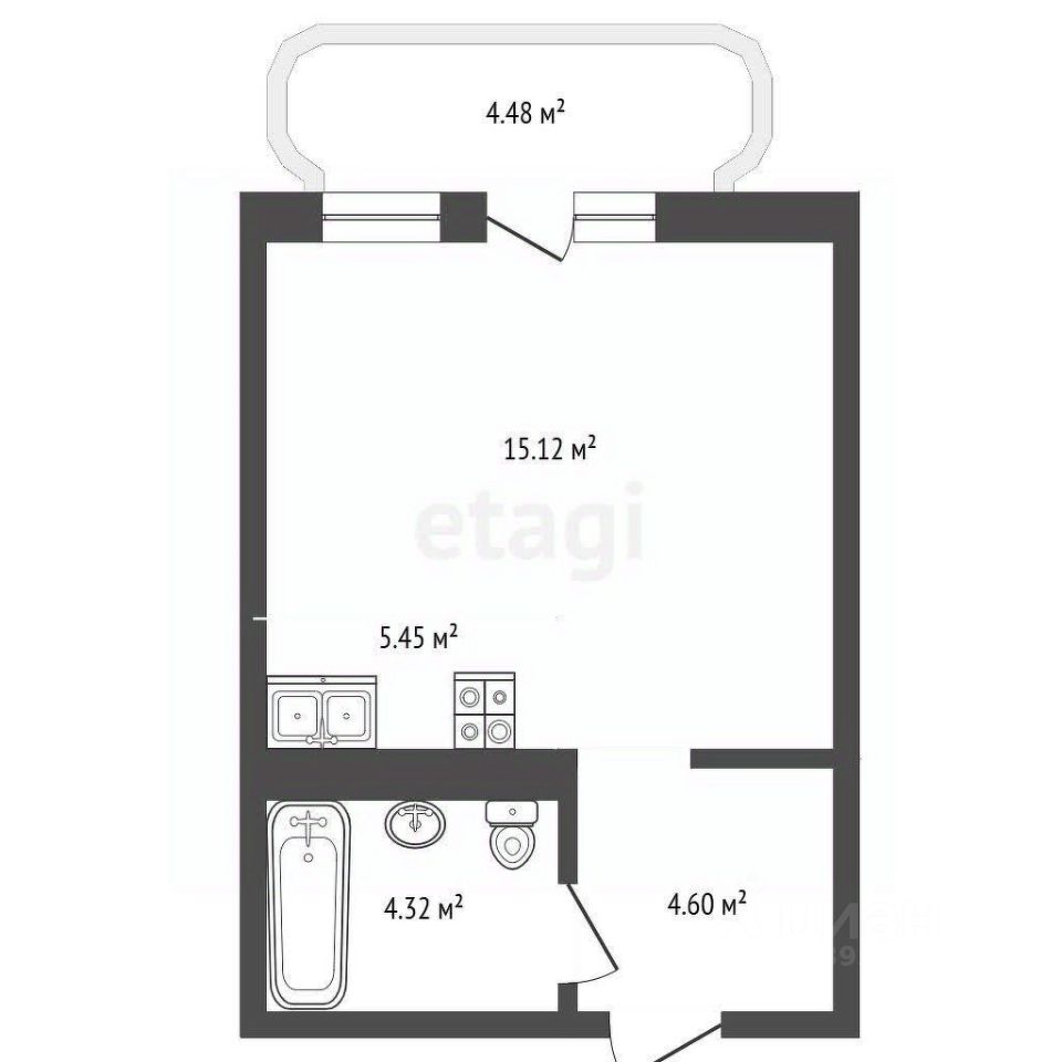 и спальное место, что позволяет эффективно использовать пространство. В прихожей оборудована ниша под шкаф-купе, в санузле предусмотрено место для стиральной машины.Дополнительное преимущество — есть балкон