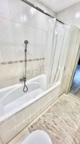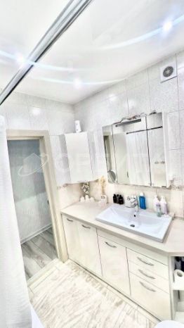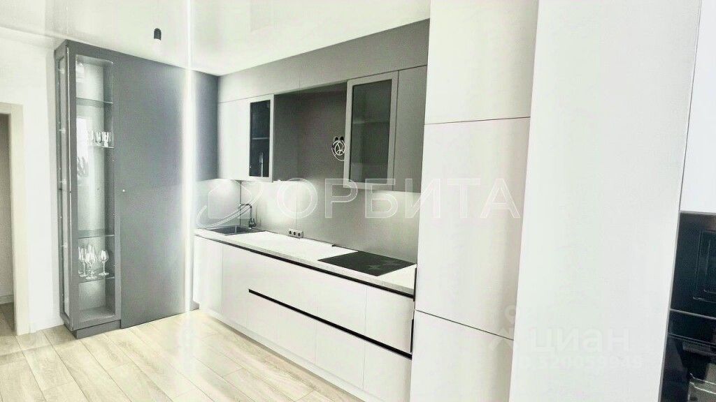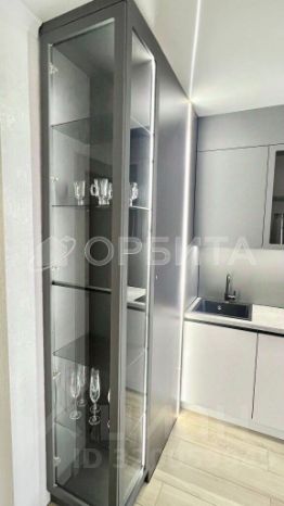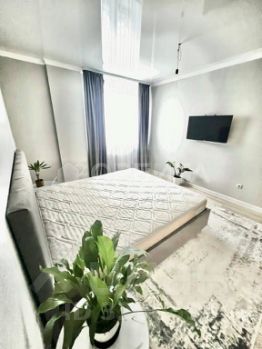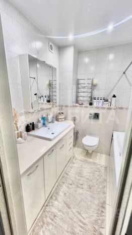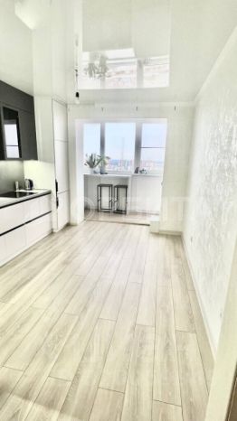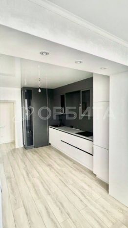 В квартире выполнен высококачественный ремонт: на стенах — красивые обои, натяжные потолки с двухзонным освещением, в санузле — качественная плитка. Также установлен современный кухонный гарнитур.