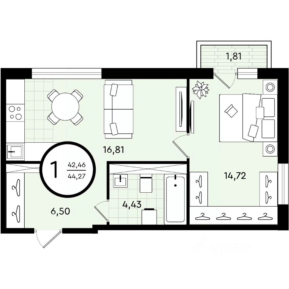 Общая площадь44,27 м²