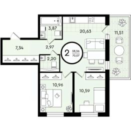 Продается 2-комн. квартира, 70,07 м²