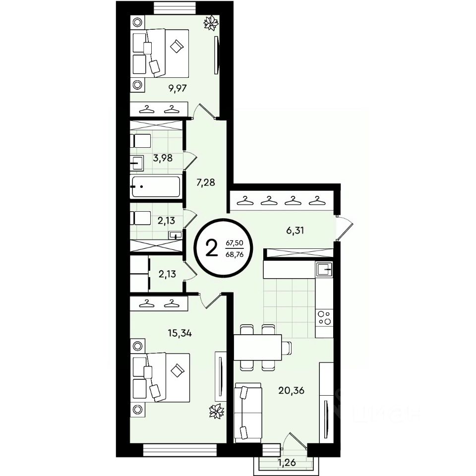 Продается 2-комн. квартира, 68,76 м²