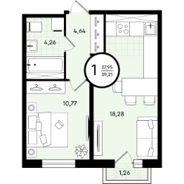 Продается 1-комн. квартира, 39,21 м²