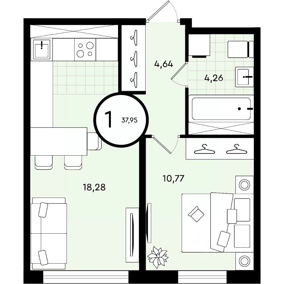 Общая площадь37,95 м²