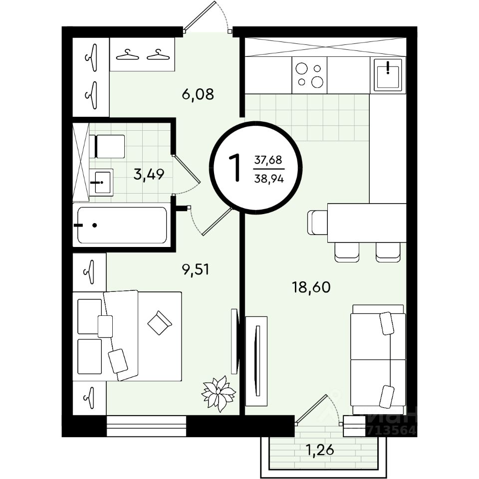 Общая площадь38,94 м²