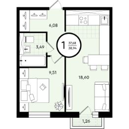 Продается 1-комн. квартира, 38,94 м²