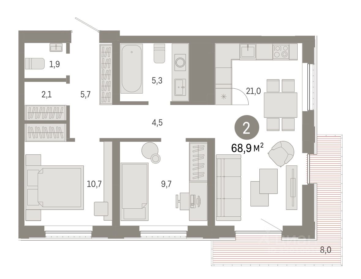 Функциональная планировка с просторной кухней-гостиной и большими окнами - сделают ваше проживание уютным и приятным.