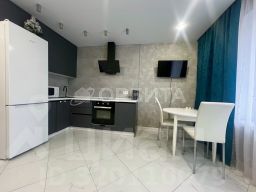 В квартире выполнен ремонт по дизайн-проекту с использованием высококачественных материалов. В квартире остается кухонный гарнитур со встроенной техникой, кухонный стол со стульями, диван, шкаф, телевизор.
