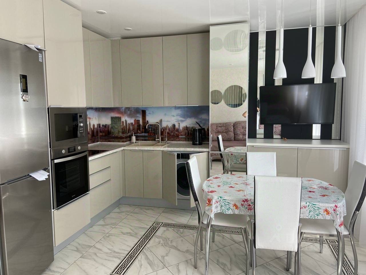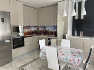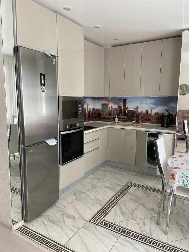 Ремонт выполнен в светлых тонах. В квартире остаются шкафы, встроенная кухня в краске, доводчики блюм. (техника: плита индукционная Бош, вытяжка, духовой шкаф и свтроенная микроволовновка, кровать+матрас Асткона, жалюзи на окнах, стол+стулья, диван ЮВАЮ НОВЫЙ + чехлы)