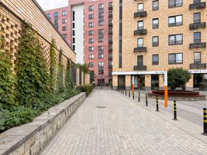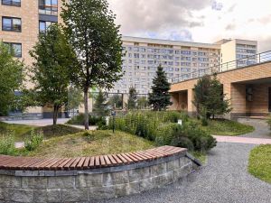 Дом кирпичный (не монолитно-каркасный) в отличном состоянии, с закрытым двором, во дворе фонтан. Рядом с домом своя пешеходная аллея, видеонаблюдение, вход в подъезд на уровне земли, колясочные, теплые входные группы, кладовые, поэтому можно легко перемещаться с коляской или велосипедами. Для автомобилей предусмотрена теплая подземная парковка.