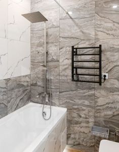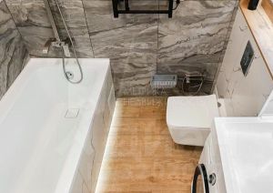 Отделочные материалы, мебель, сантехника и бытовая техника (кроме телевизора) высокого качества подобраны с учетом долговечности и эстетики — всё это останется вам в подарок! Высота потолков составляет 2.76 м, что добавляет ощущение простора.