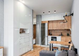 Ремонт безупречный и не оставит вас равнодушным. Системы хранения в кухонной зоне и зоне отдыха эргономично вписаны в интерьер, что делает пространство ещё более функциональным.