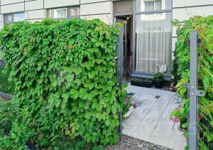 Особое внимание привлекает терраса с живой зеленой изгородью по всему периметру. Она создаёт атмосферу уединенности и защищает от посторонних взглядов.