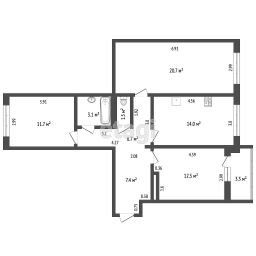 Трехкомнатная квартира площадью 77,9 кв.м расположена в Тюменском микрорайоне — одном из наиболее благоустроенных районов города.