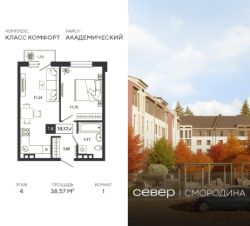 Продаётся квартира площадью 38.57 м2 в жилом комплексе "Смородина".