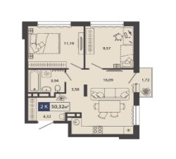 Продаётся квартира площадью 50.32 м2 в жилом комплексе "Смородина".