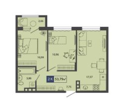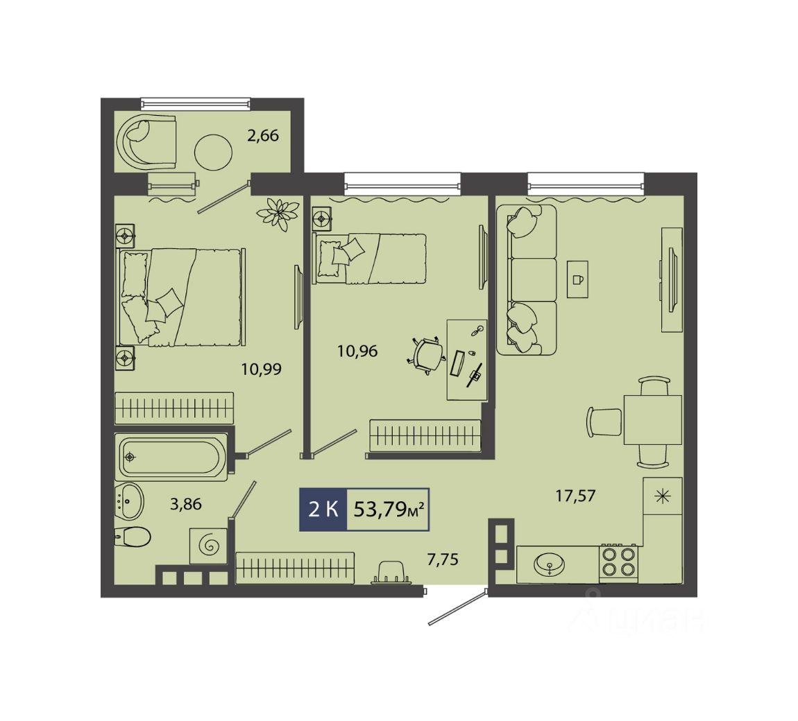 Продаётся квартира площадью 53.79 м2 в жилом комплексе "Смородина".