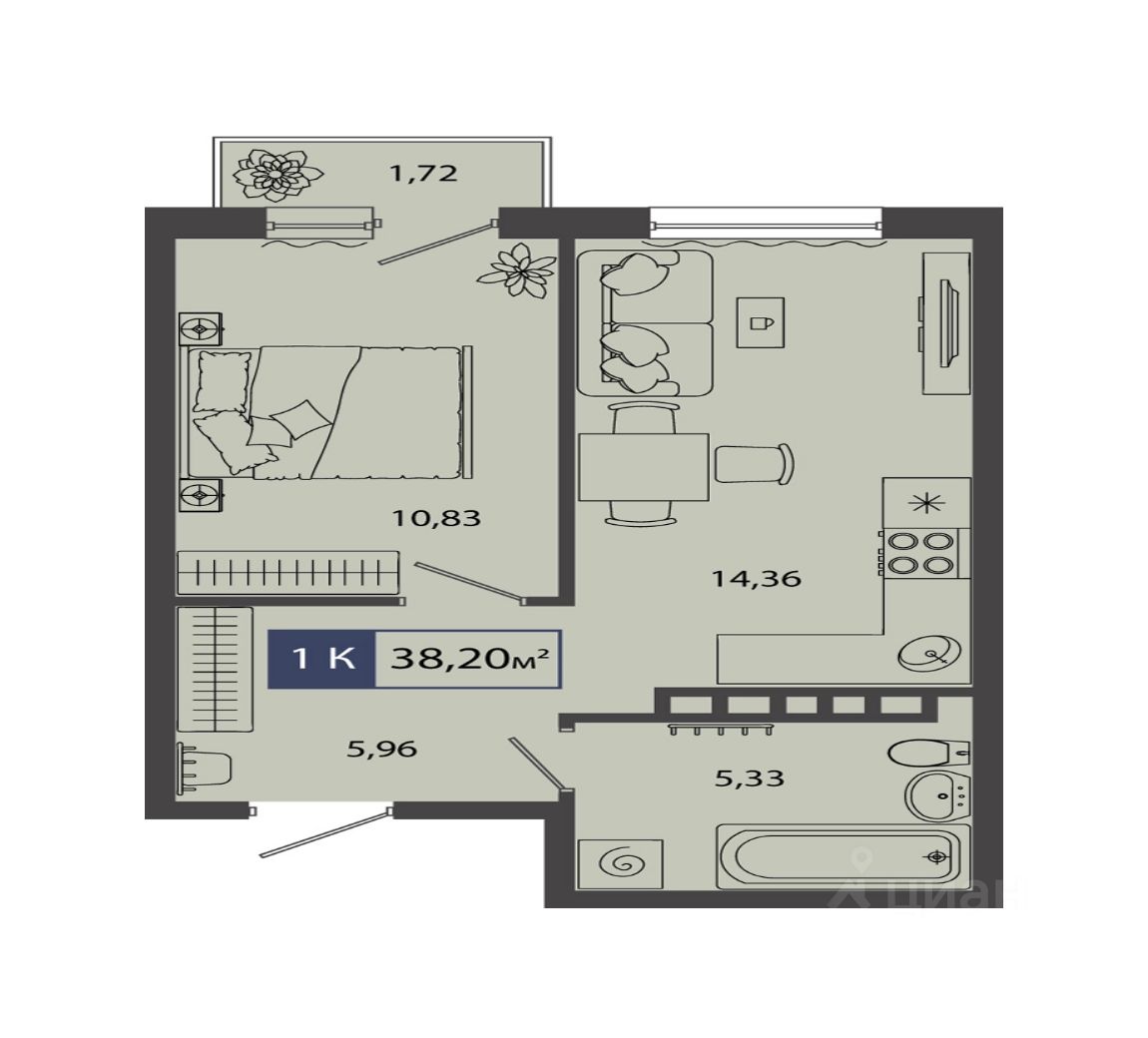 Продаётся квартира площадью 38.20 м2 в жилом комплексе "Смородина". Квартира находится на 4 этаже дома, который будет введен в эксплуатацию в 1 квартале 2026 года. Жилая площадь квартиры 10.83 м2, площадь просторной кухни — 14.36 м2. Среди особенностей планировки — изолированные комнаты с окнами на одну сторону, 1 совмещённый санузел. Жилой комплекс "Смородина" — это: уютный малоэтажный комплекс в районе ММС дома высотой 4 этажа квартиры от студий до семейных вариантов с отапливаемыми лоджиями экологичные материалы в благоустройстве территории 1 очередь — срок сдачи в 2025 году 2 очередь — III кв. 2026 3 очередь — IV кв. 2026 Окружение В 5 минутах ходьбы от проекта — озеро Липовое с песчаным пляжем и лесопарковая зона. Инфраструктура В шаговой доступности есть все для комфортной жизни: школы, детские сады, магазины и аптеки. Рядом с проектом — остановка общественного транспорта. Благоустройство Прямо во дворе — собственные грядки для жителей, где можно выращивать зелень и цветы. Для детей оборудованы детские площадки из натуральных материалов. Лобби Вдохновленные современными тенденциями наши парадные разработаны с акцентом на эстетическую привлекательность и практичность. Использование натуральных материалов и ярких цветовых акцентов создает атмосферу уюта и стиля. Планировки Среди многообразия продуманных планировок есть и уютные студии, и просторные семейные варианты. Во всех квартирах предусмотрены отапливаемые лоджии, где можно устроить зону отдыха или рабочий кабинет.