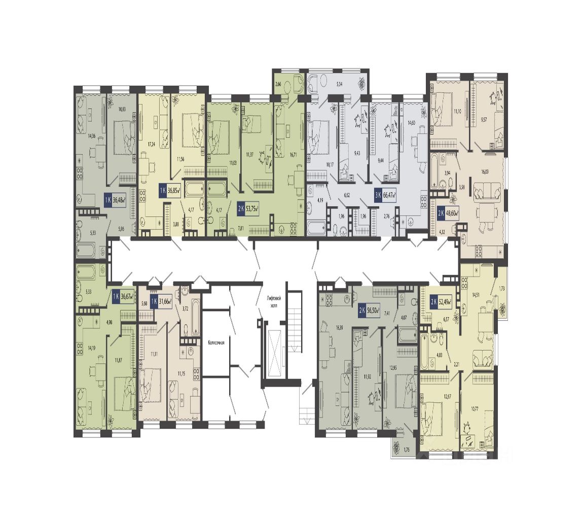 - квартиры от студий до семейных вариантов с отапливаемыми лоджиями