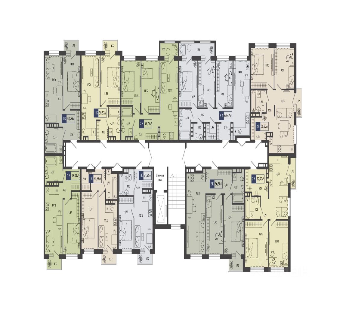 Среди многообразия продуманных планировок есть и уютные студии, и просторные семейные варианты. Во всех квартирах предусмотрены отапливаемые лоджии, где можно устроить зону отдыха или рабочий кабинет.