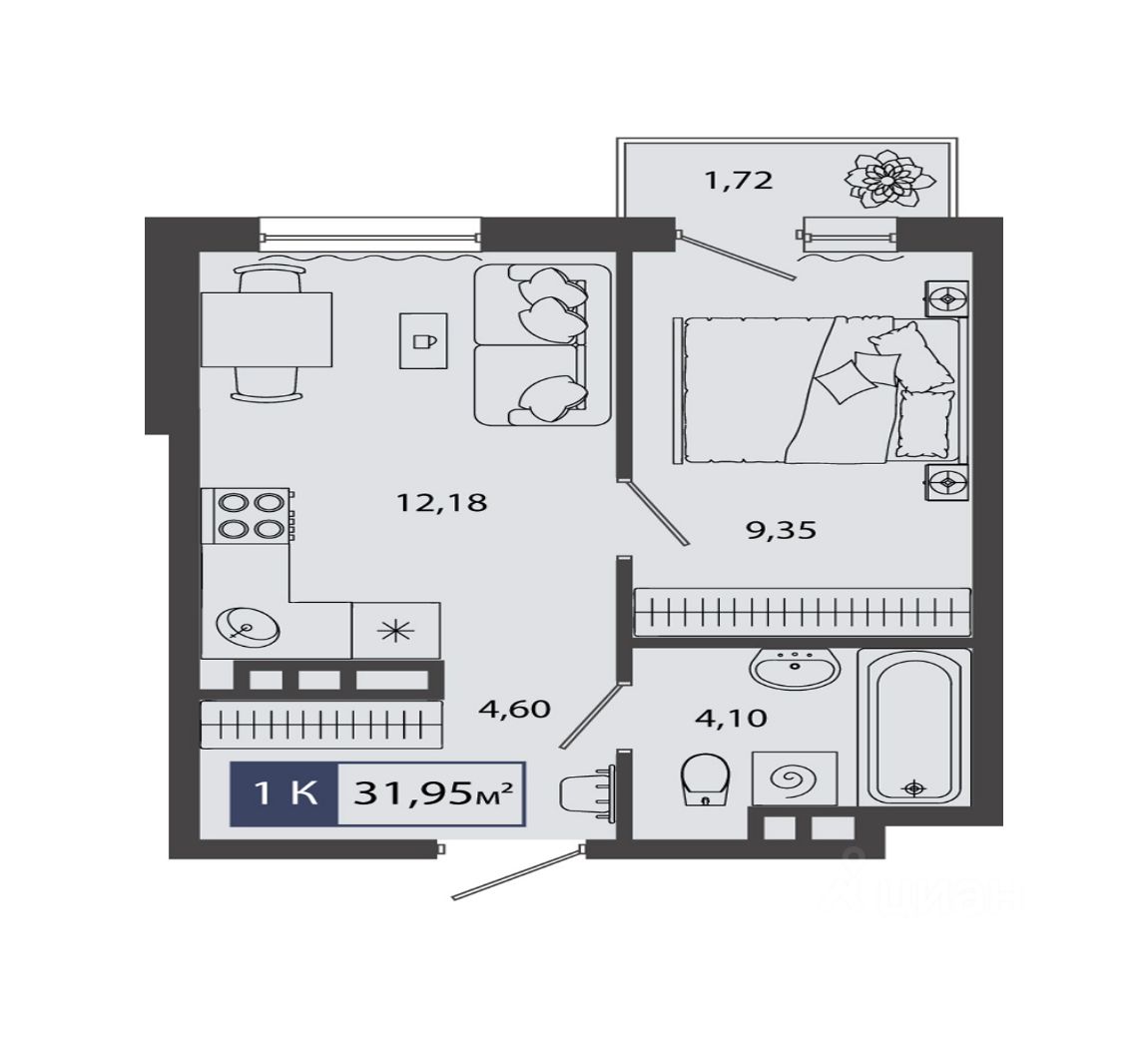Общая площадь31,95 м²