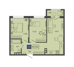 Продаётся квартира площадью 53.75 м2 в жилом комплексе "Смородина". Квартира находится на 4 этаже дома, который будет введен в эксплуатацию в 2 квартале 2028 года. Жилая площадь квартиры 22.40 м2, площадь просторной кухни — 16.71 м2. Среди особенностей планировки — изолированные комнаты с окнами на одну сторону, 1 совмещённый санузел. Жилой комплекс "Смородина" — это: уютный малоэтажный комплекс в районе ММС дома высотой 4 этажа квартиры от студий до семейных вариантов с отапливаемыми лоджиями экологичные материалы в благоустройстве территории 1 очередь — срок сдачи в 2025 году 2 очередь — III кв. 2026 3 очередь — IV кв. 2026 Окружение В 5 минутах ходьбы от проекта — озеро Липовое с песчаным пляжем и лесопарковая зона. Инфраструктура В шаговой доступности есть все для комфортной жизни: школы, детские сады, магазины и аптеки. Рядом с проектом — остановка общественного транспорта. Благоустройство Прямо во дворе — собственные грядки для жителей, где можно выращивать зелень и цветы. Для детей оборудованы детские площадки из натуральных материалов. Лобби Вдохновленные современными тенденциями наши парадные разработаны с акцентом на эстетическую привлекательность и практичность. Использование натуральных материалов и ярких цветовых акцентов создает атмосферу уюта и стиля. Планировки Среди многообразия продуманных планировок есть и уютные студии, и просторные семейные варианты. Во всех квартирах предусмотрены отапливаемые лоджии, где можно устроить зону отдыха или рабочий кабинет.