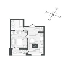 Квартира находится на 1 этаже дома, который будет введен в эксплуатацию во 2 квартале 2028 года. Жилая площадь квартиры 12.66 м2, площадь просторной кухни — 15.03 м2. Среди особенностей планировки — изолированные комнаты с окнами на одну сторону, 1 совмещённый санузел.