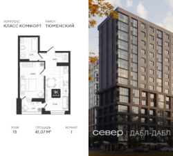 Продаётся квартира площадью 41.07 м2 в жилом комплексе "Дабл-Дабл". Квартира находится на 15 этаже, жилая площадь квартиры 12.66 м2, площадь просторной кухни — 15.02 м2. Среди особенностей планировки — изолированные комнаты с окнами на одну сторону, 1 совмещённый санузел.