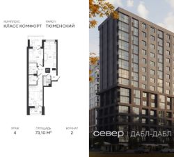Продаётся квартира площадью 73.10 м2 в жилом комплексе "Дабл-Дабл". Квартира находится на 4 этаже, жилая площадь квартиры 27.62 м2, площадь просторной кухни — 17.04 м2. Среди особенностей планировки — изолированные комнаты с окнами на одну сторону, 1 совмещённый санузел.