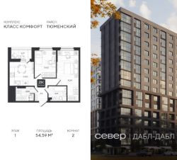 Продаётся квартира площадью 54.59 м2 в жилом комплексе "Дабл-Дабл". Квартира находится на 1 этаже, жилая площадь квартиры 26.28 м2, площадь просторной кухни — 10.28 м2. Среди особенностей планировки — изолированные комнаты с окнами на одну сторону, 1 совмещённый санузел.