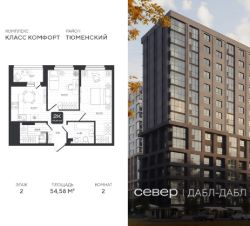 Продаётся квартира площадью 54.58 м2 в жилом комплексе "Дабл-Дабл".