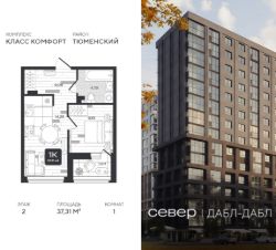 Продаётся квартира площадью 37.31 м2 в жилом комплексе "Дабл-Дабл".