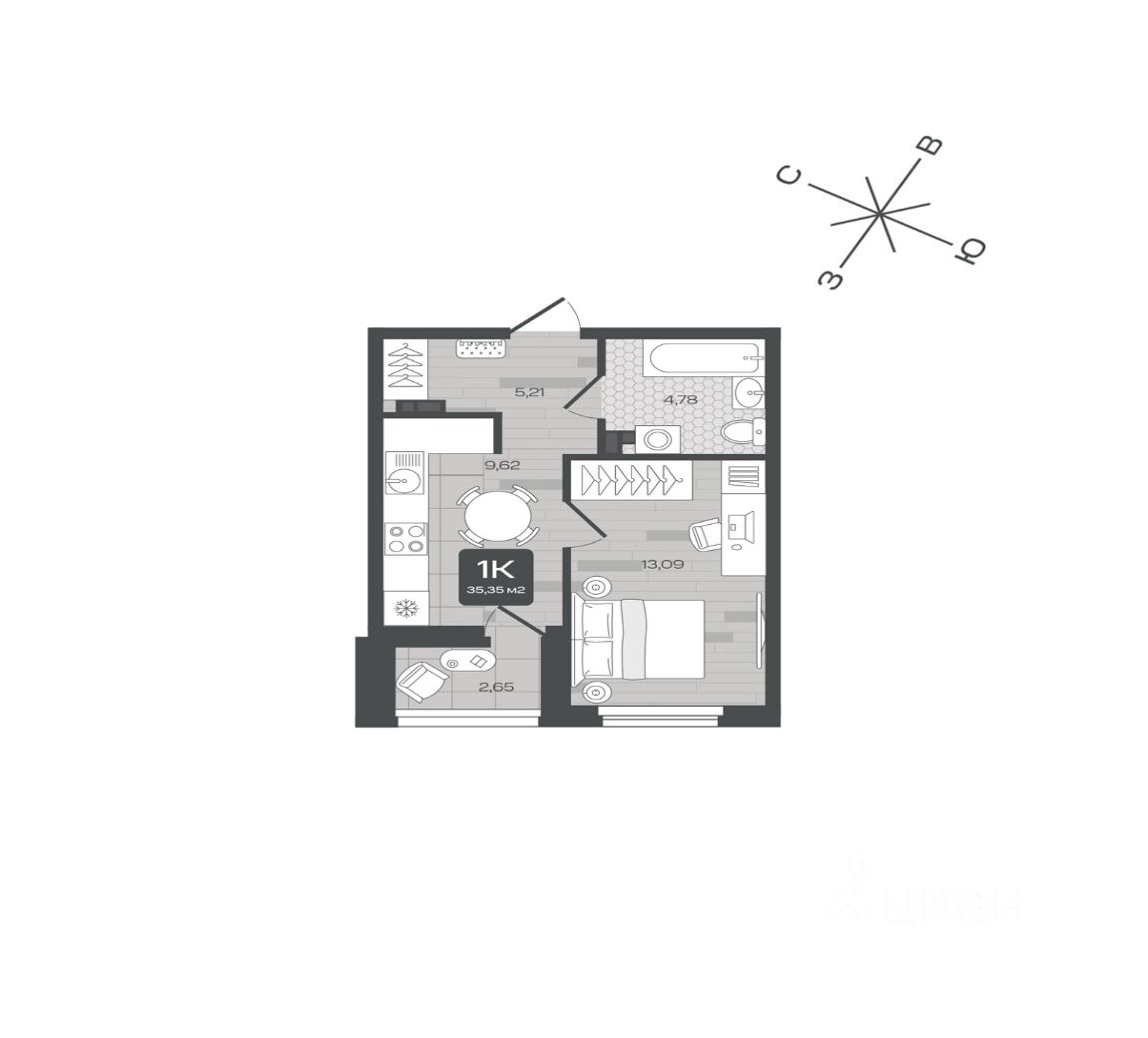 Продаётся квартира площадью 35.35 м2 в жилом комплексе "Дабл-Дабл".