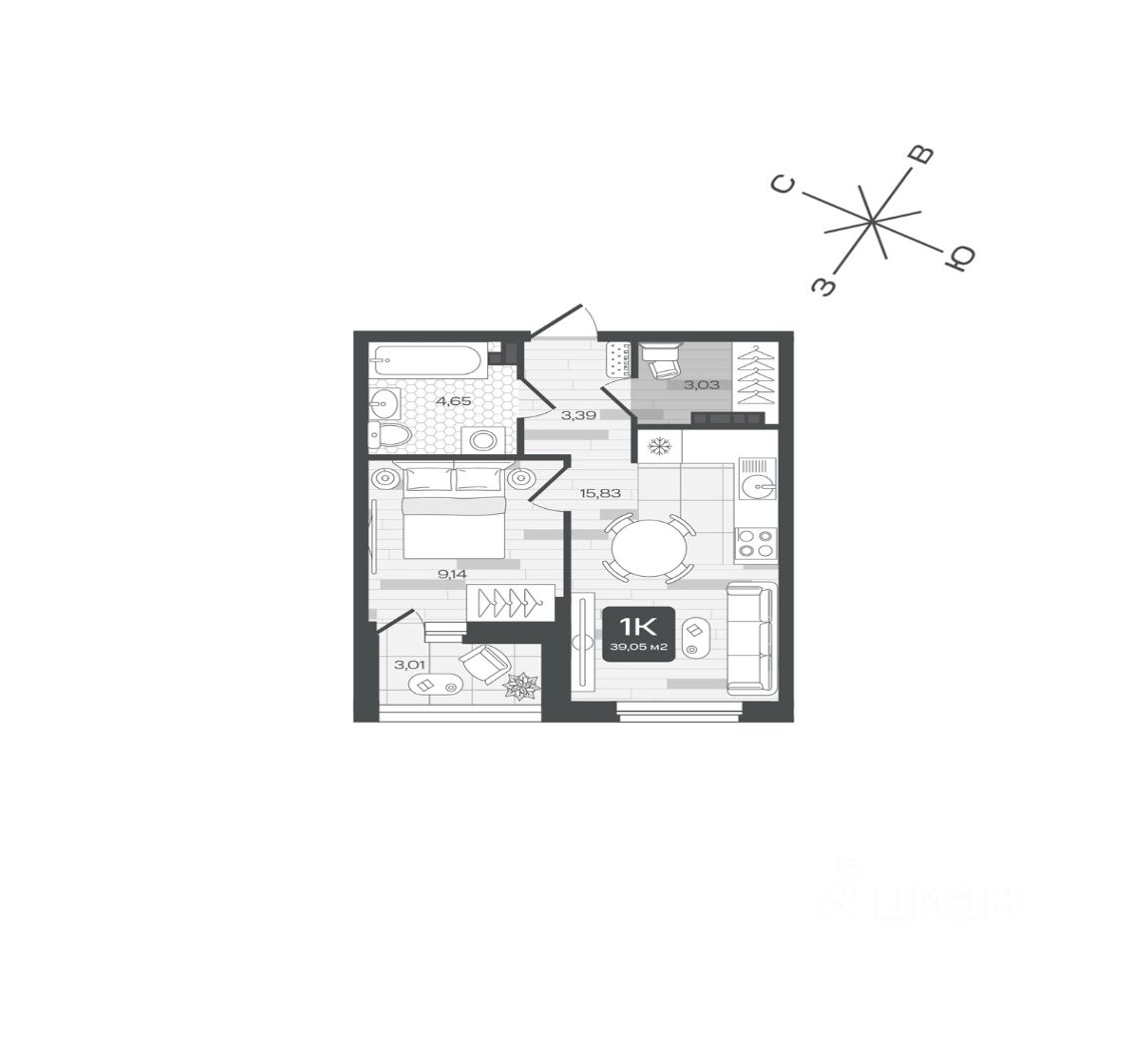 Продаётся квартира площадью 39.05 м2 в жилом комплексе "Дабл-Дабл".
