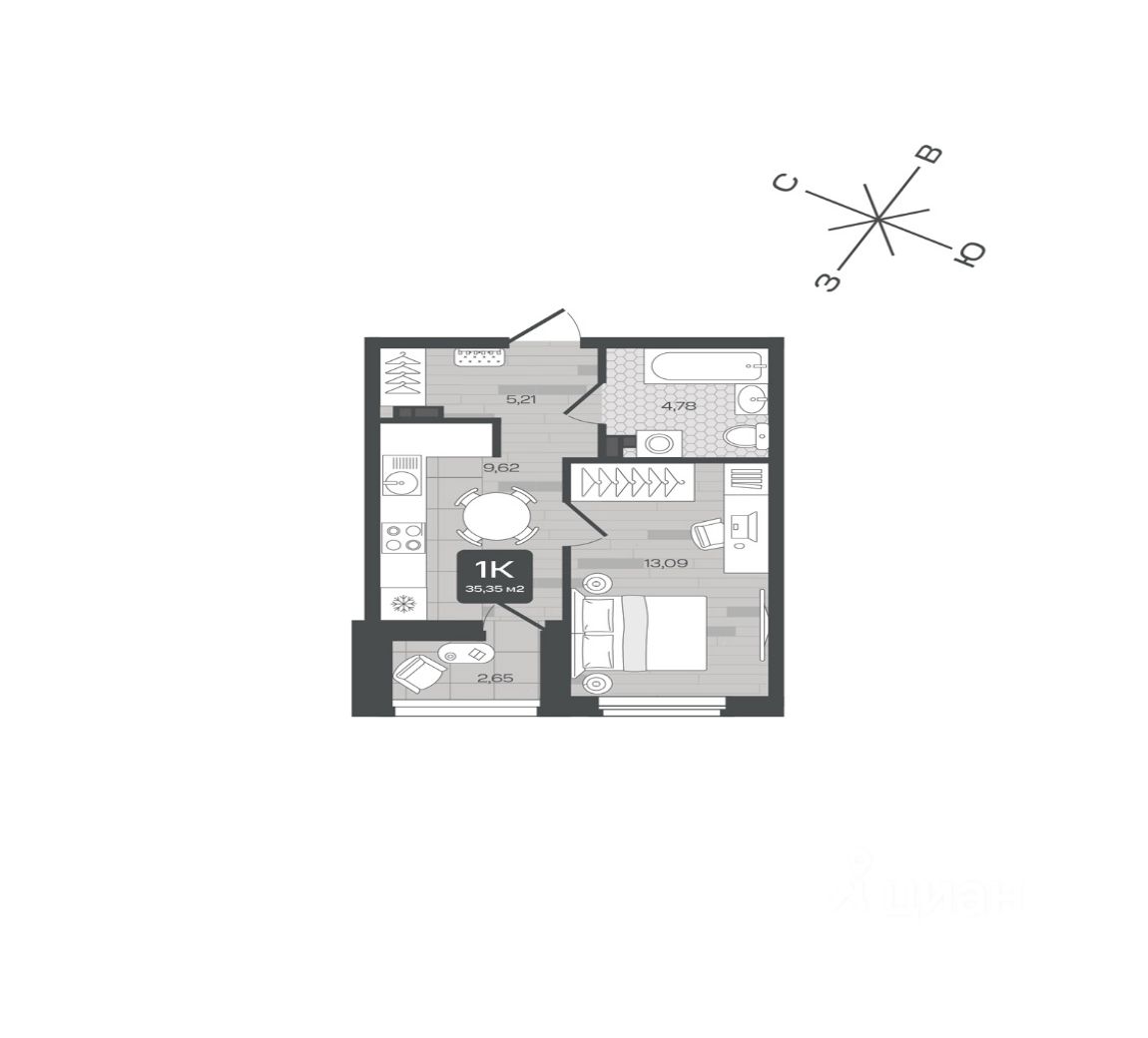 Продаётся квартира площадью 35.35 м2 в жилом комплексе "Дабл-Дабл".