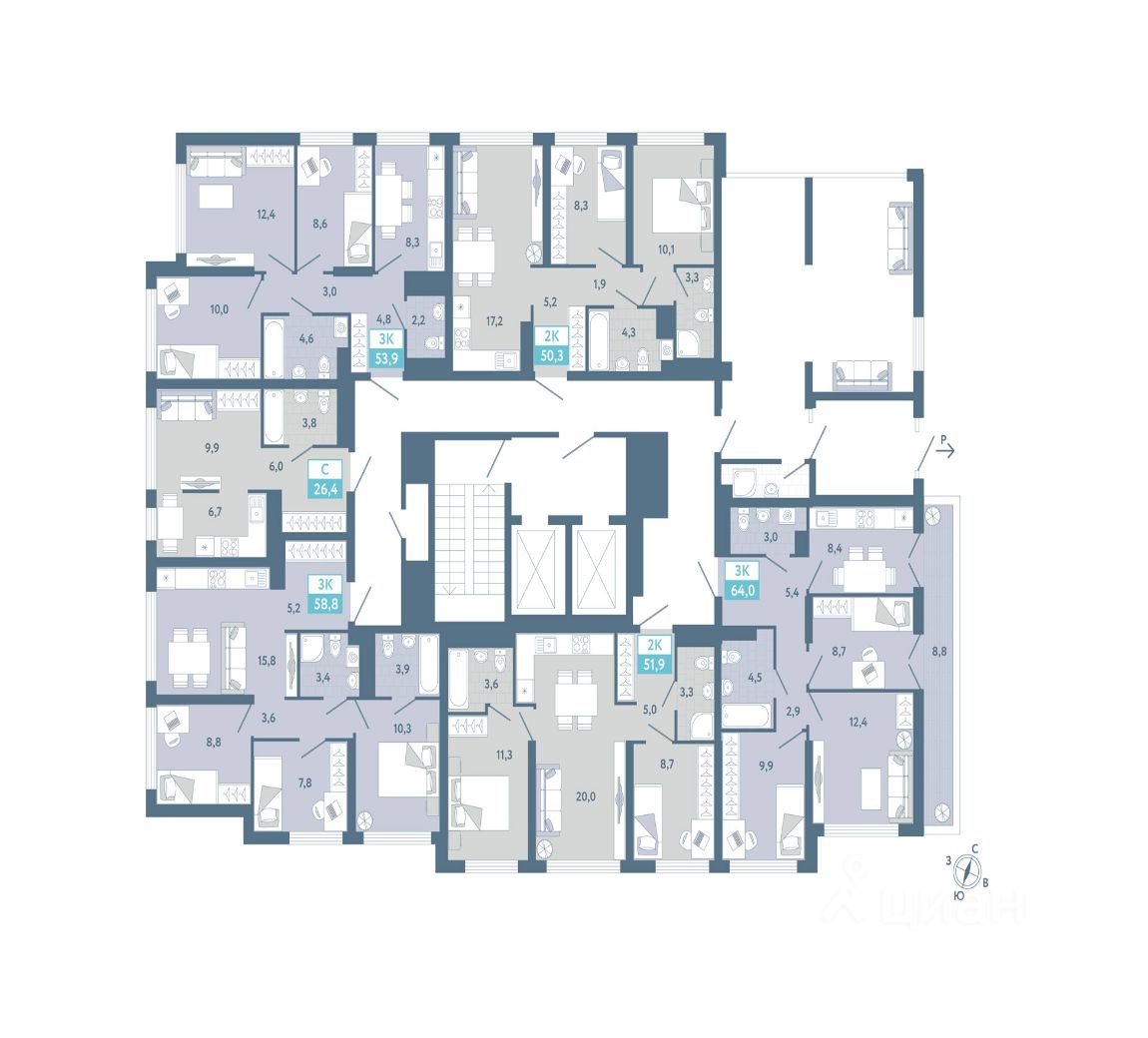 Продаётся квартира площадью 51.90 м2 в жилом комплексе "Айрис".