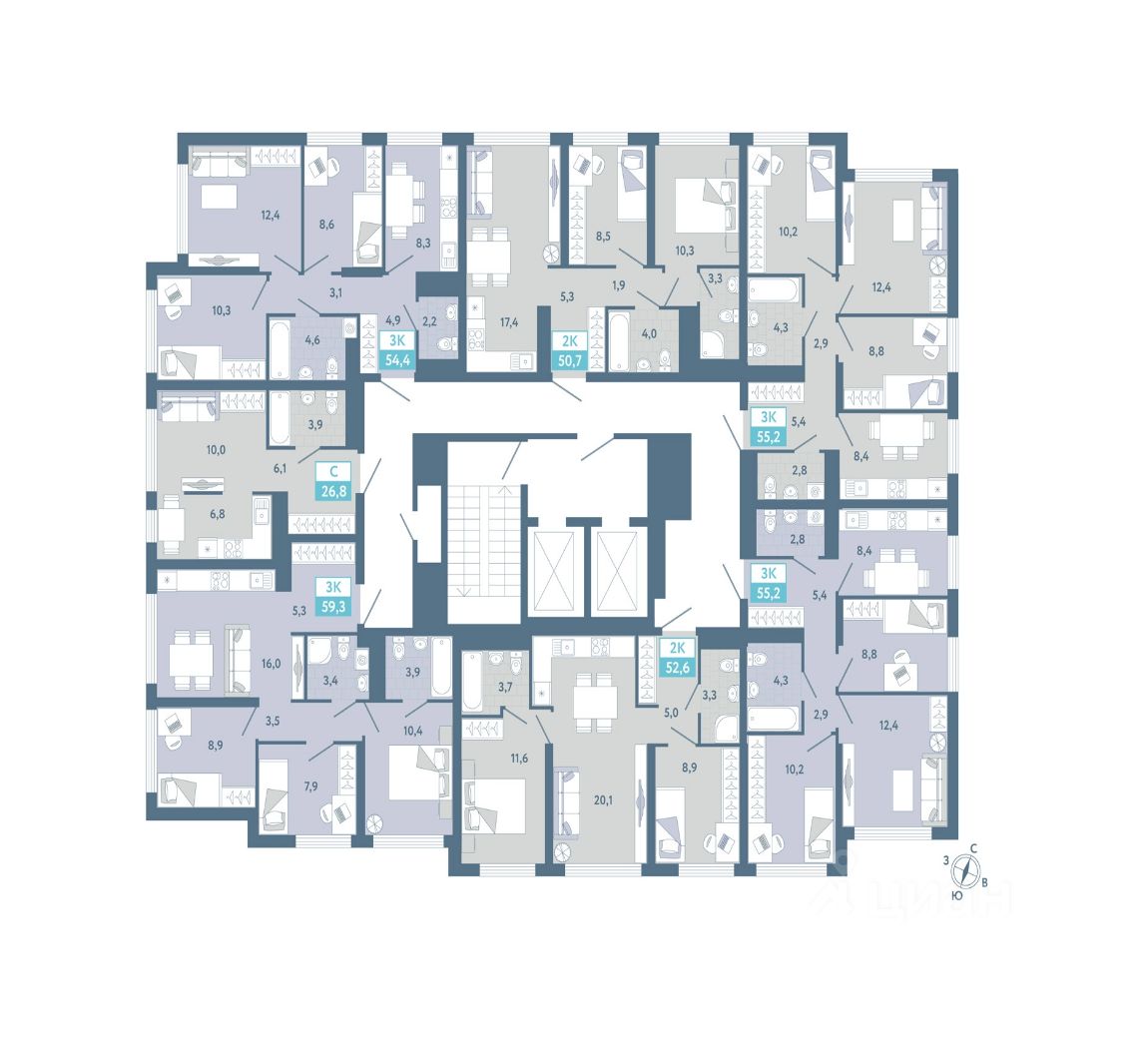 Продаётся квартира площадью 52.60 м2 в жилом комплексе "Айрис".