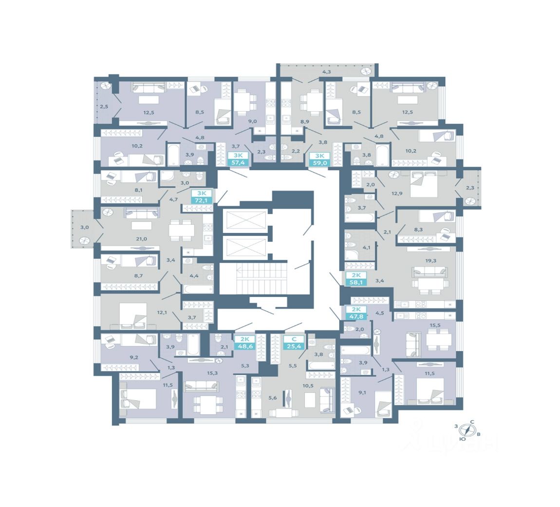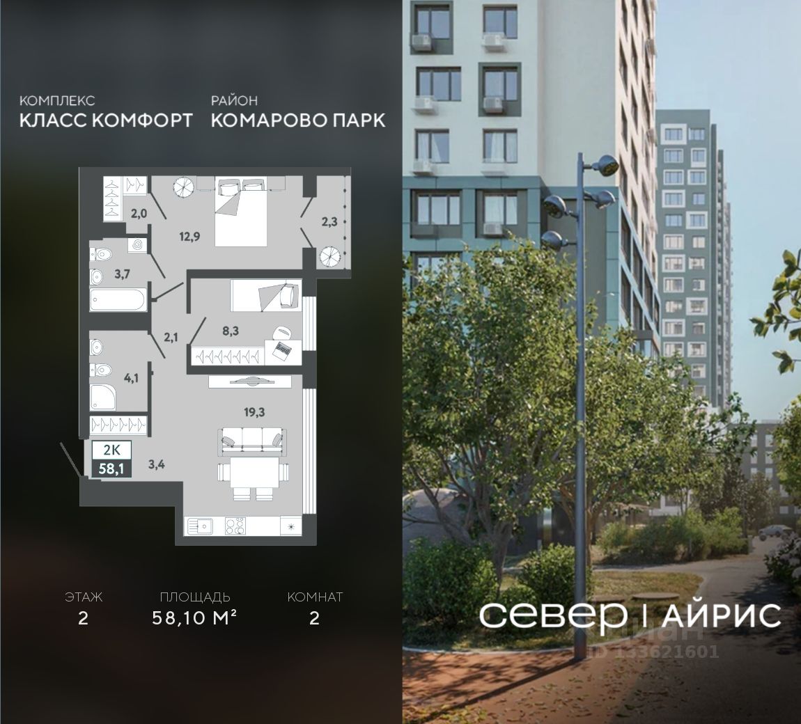 Продаётся квартира площадью 58.10 м2 в жилом комплексе "Айрис".