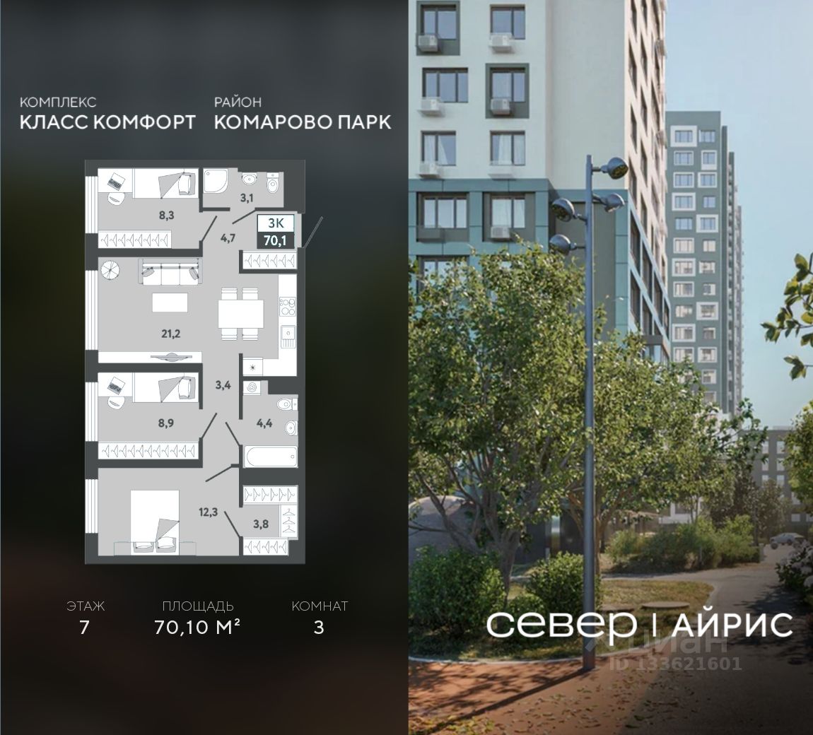 Продаётся квартира площадью 70.10 м2 в жилом комплексе "Айрис".
