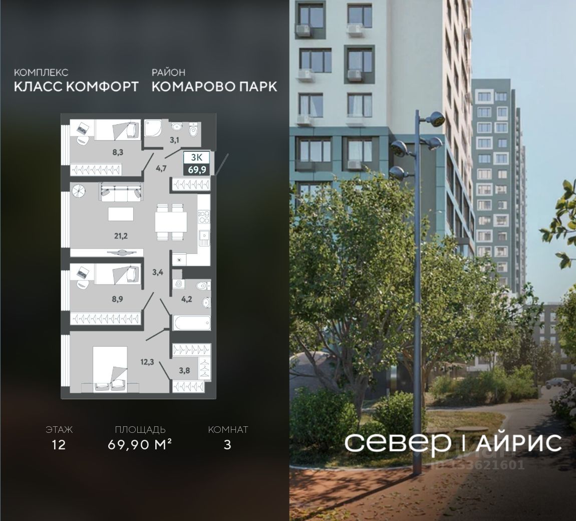 Продаётся квартира площадью 69.90 м2 в жилом комплексе "Айрис".