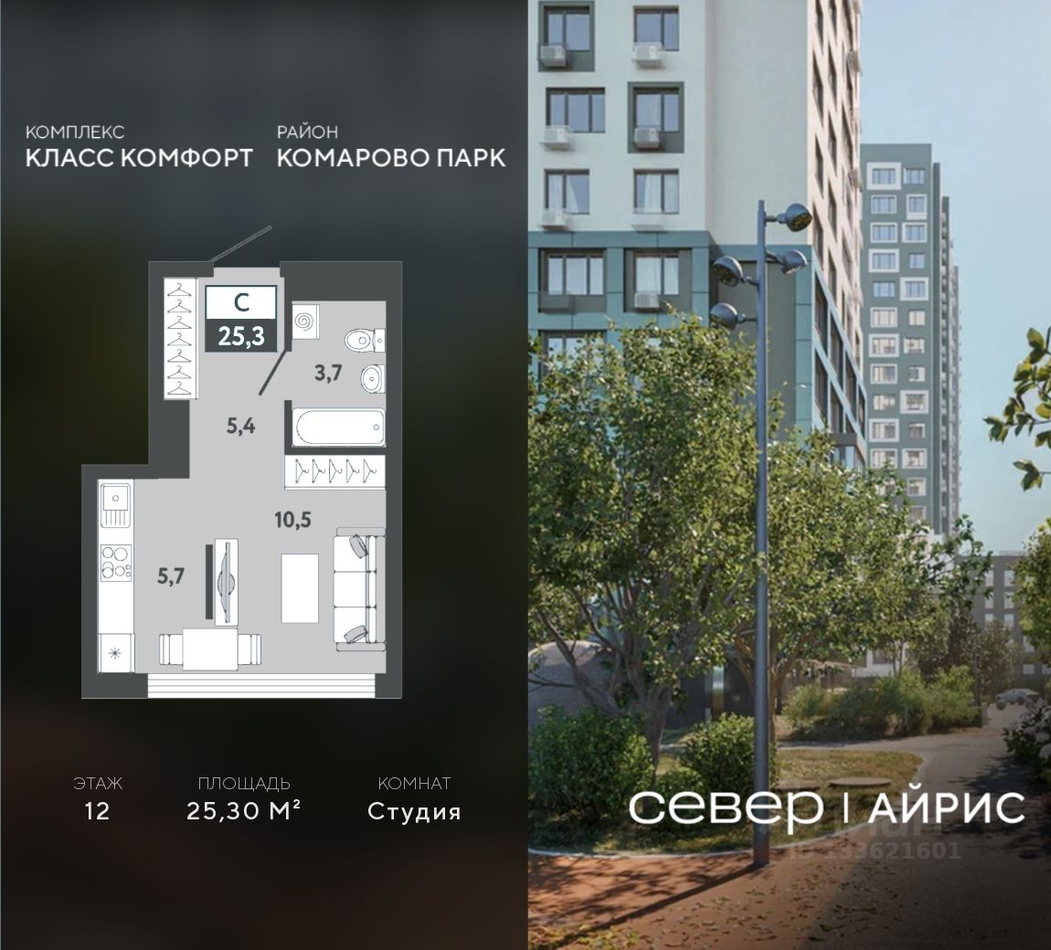 Продаётся квартира площадью 25.30 м2 в жилом комплексе "Айрис".