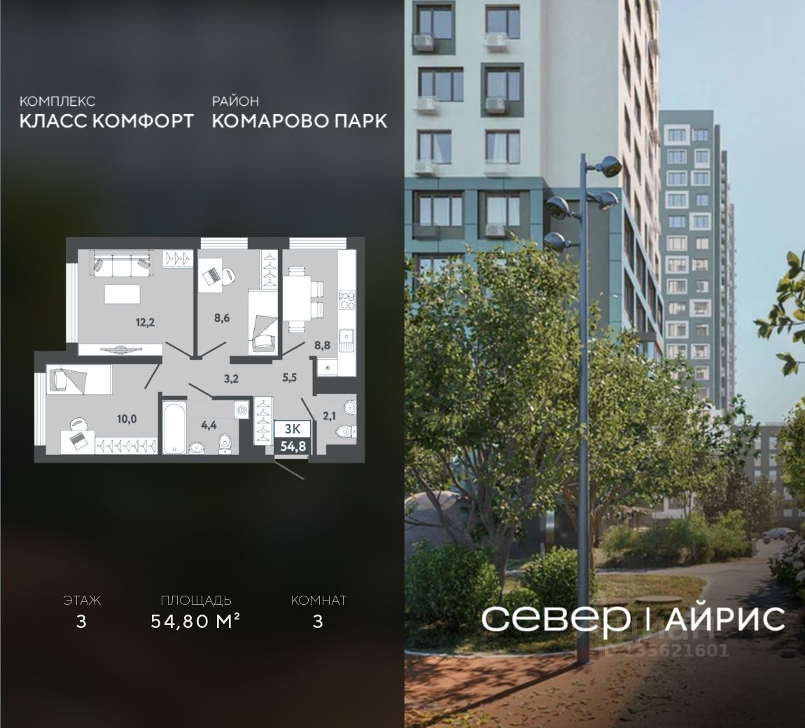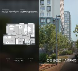 Продаётся квартира площадью 54.80 м2 в жилом комплексе "Айрис".
